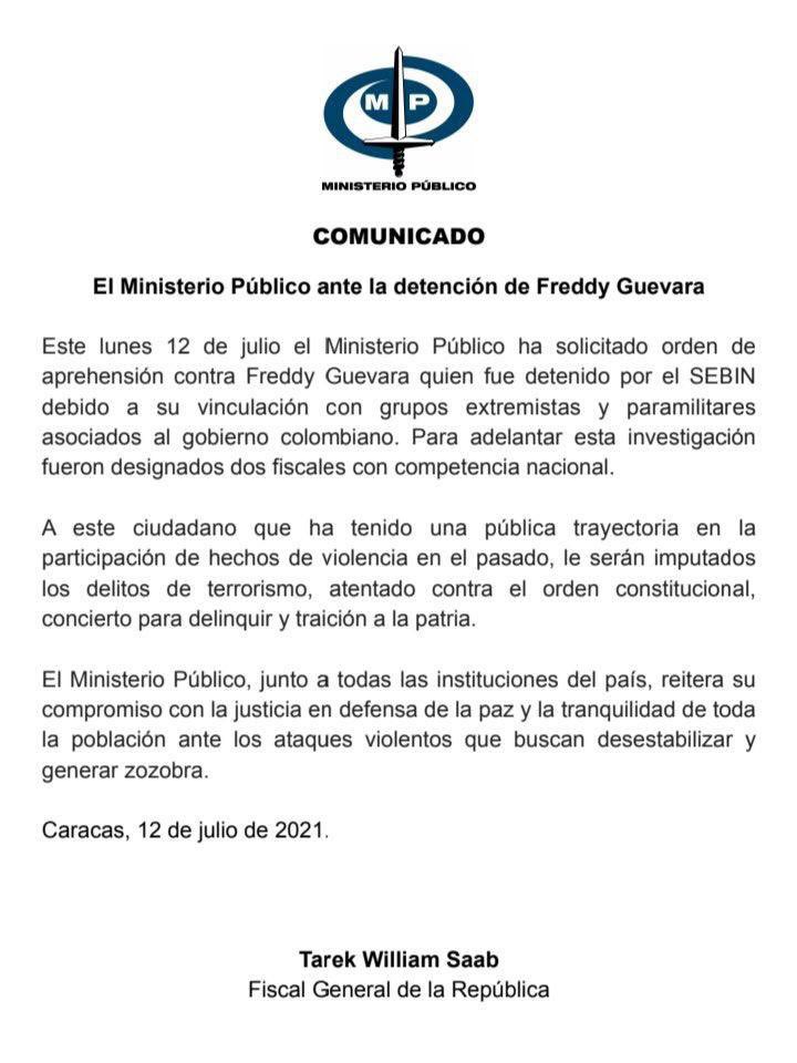 @TarekWiliamSaab le imputó públicamente los cargos de terrorismo, atentado contra el orden constitucional, concierto para delinquir y traición a la patria. Estos cargos fueron confirmados durante la audiencia.pic.twitter.com/2hole7O0Sm