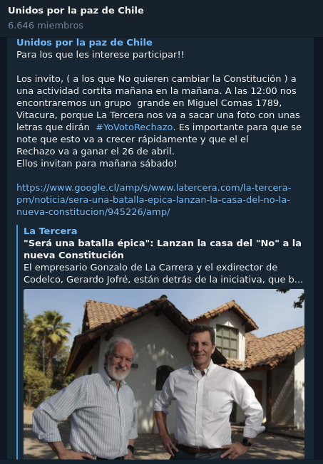 Si quieren leer más y mantenerse actualizados, descarguen telegram y únanse usando este linkhttps://t.me/organizacionydefensadeChile …