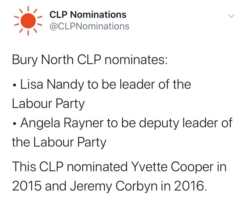 So pleased to get nominated for deputy leader of the Labour Party by