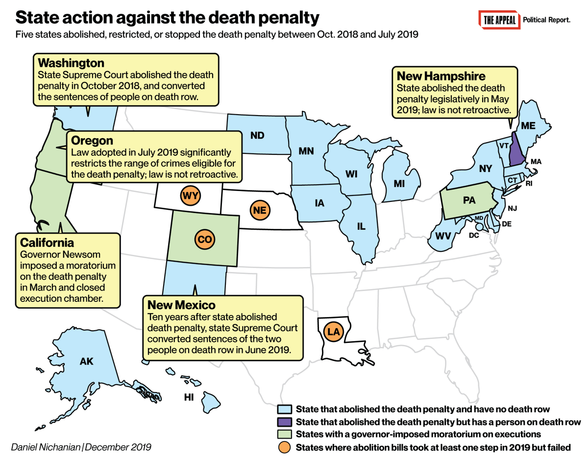 This comes on the heels of a wave of steps against the death penalty starting in late 2018: https://theappeal.org/politicalreport/2019-review-criminal-justice-reform-legislatures-maps/ …pic.twitter.com/SeUdp8lYvi