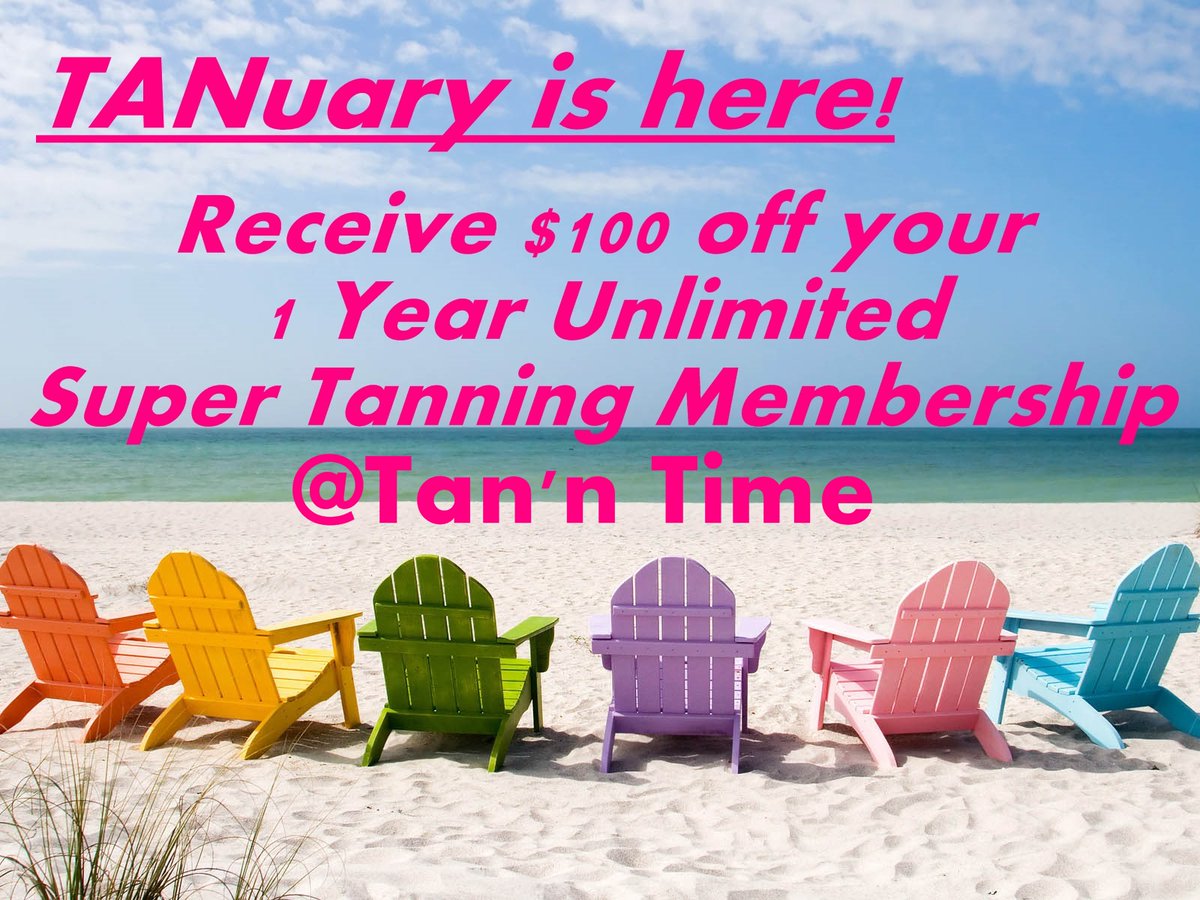 Tomorrow, Tuesday Jan 14th, is $2 Tuesday at Tan'n Time. Anyone who buys a $2 session will be entered into a drawing to win $28 in FREE TANNING!! See you all tomorrow