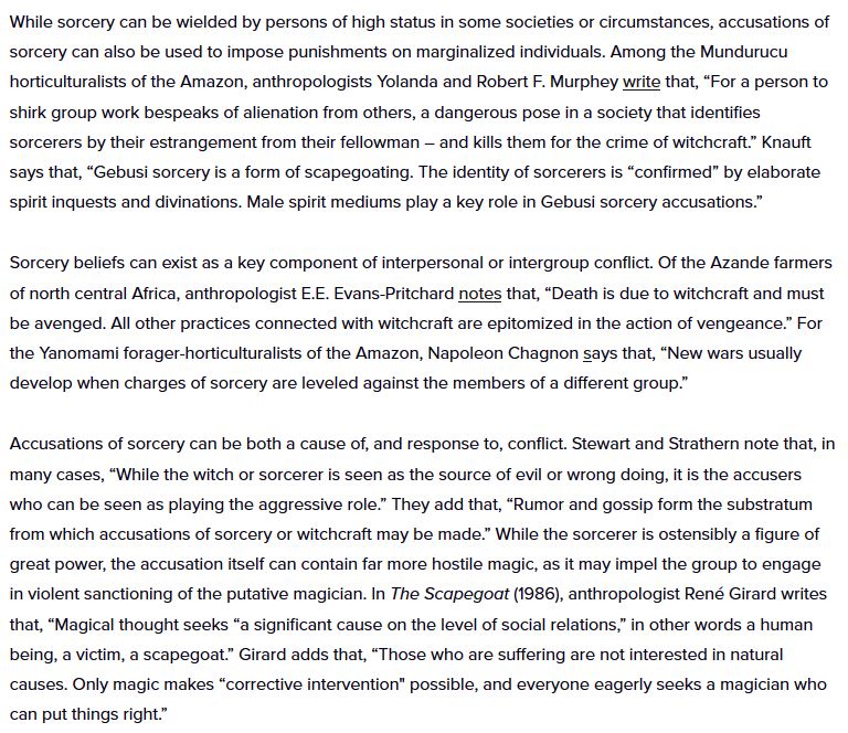 Next article was on role sorcery plays in mediating social life across many societies, n how it can provide a framework for understanding the world. Sorcery beliefs can also be exploited by self-interested parties to promote themselves or scapegoat others. https://traditionsofconflict.com/blog/2018/7/6/the-nature-of-sorcery …pic.twitter.com/5nYcnO8ULS