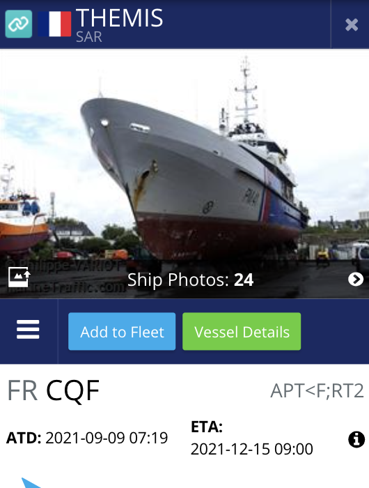 #Calais Au tour d’un patrouilleur maritime «French Warship» (sans nom) selon@MarineTraffic, de Cherbourg, de faire des AllerRetour face à la côte. Aux endroits d’où partent les bateaux de réfugiés. Radar ? «Pushbacks» ? Financez notre hélicoptère !