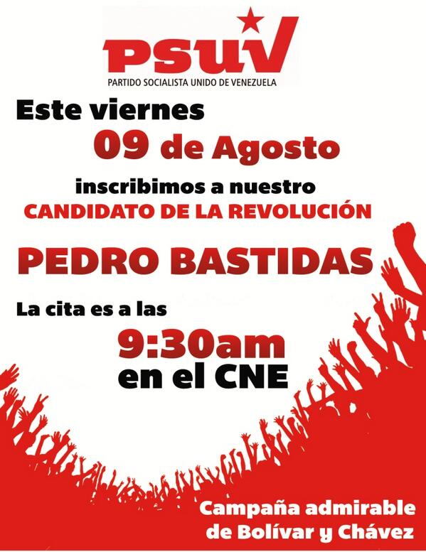 @TareckPSUV Mañana #9deAGOSTO a las #9y30am Se Inscribe pic.twitter.com/3fdoy1TVMf el Candidato de #GIRARDOT Por #PSUV Y #GPP @bastidaspedro1
