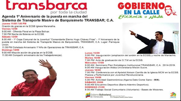 @TareckPSUV@NelsonTorcate: Programación Aniversaria de@Transbarca, te invitamos a acompañarnospic.twitter.com/nE3nzYZY2c