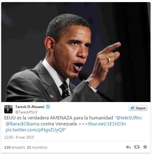 @TareckPSUV@GobiernoAragua AQUI TAMBIENLOS VENEZOLANOS NOS SENTIMOS AMENAZADOS LIBRES DELINCUENTES PRESOS LOS INOCENTES VIVA@BarackObamaThanks. Twitter will use this to make your timeline better. UndoUndo