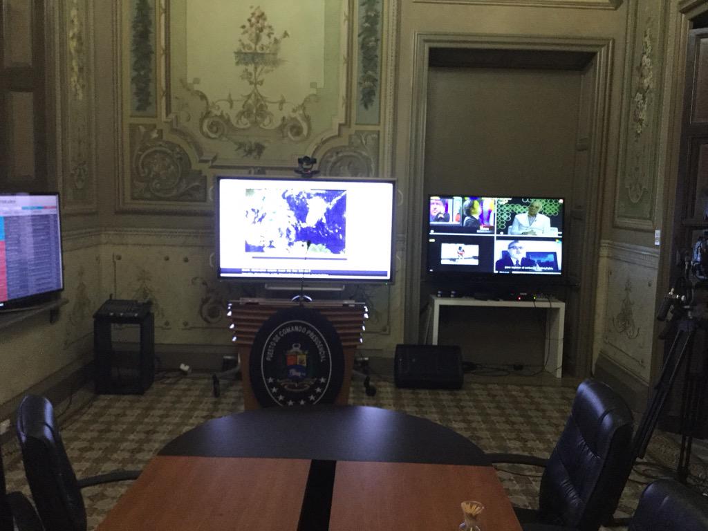Puesto de Comando Presidencial,Palacio de Miraflores.A esta hora (03:20 am) recibiendo reportes de #VENEZUELApotenciapic.twitter.com/yIxJL4vBiB