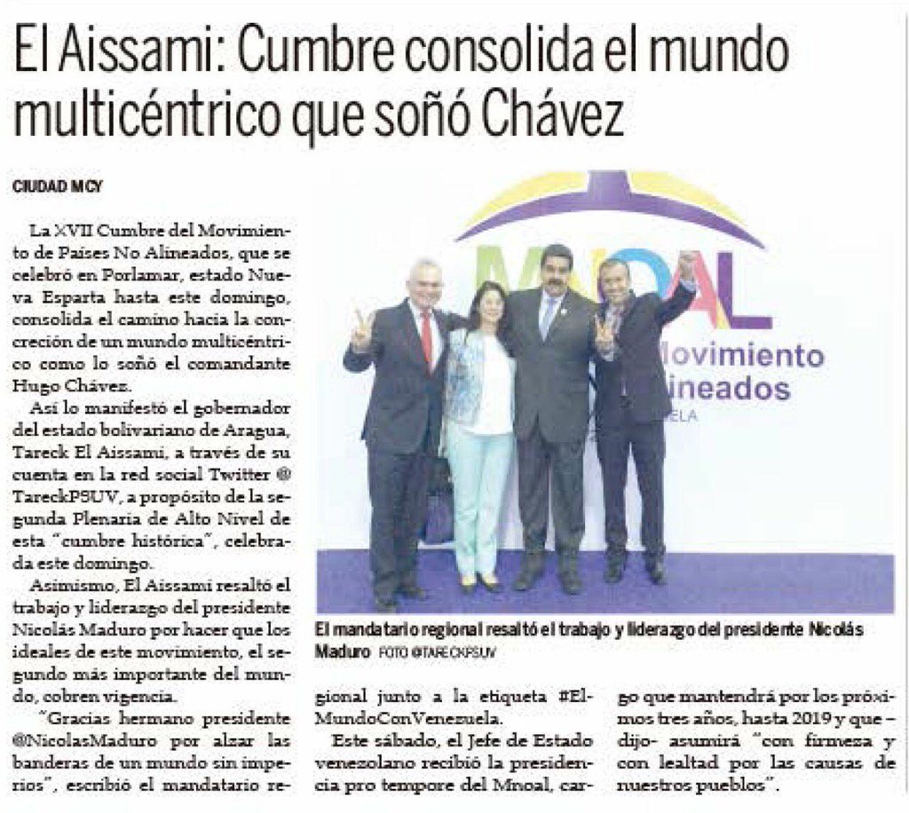 Mientras el mundo no-alineados es multicéntrico y pluripolar,Venezuela es,lo menos,bipolar,o un solo polo patriótico.