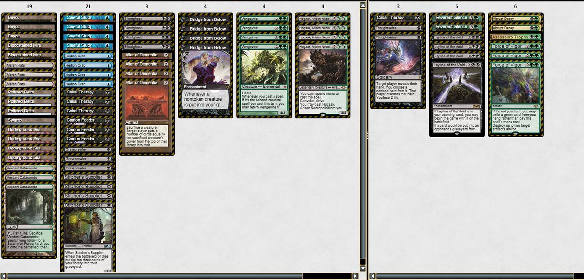 @TariqPatel10 s version of Hogaak. 1-2 Depths 2-0 UW Blade 2-0 Infect 2-0 4c Snow 2-0 RUG Delver ID 2-1 Shadow 2-0 4c Loam 1-2 Dnt After a long day there were certainly some punts vs dnt at the end.pic.twitter.com/MxZ0GQn2It