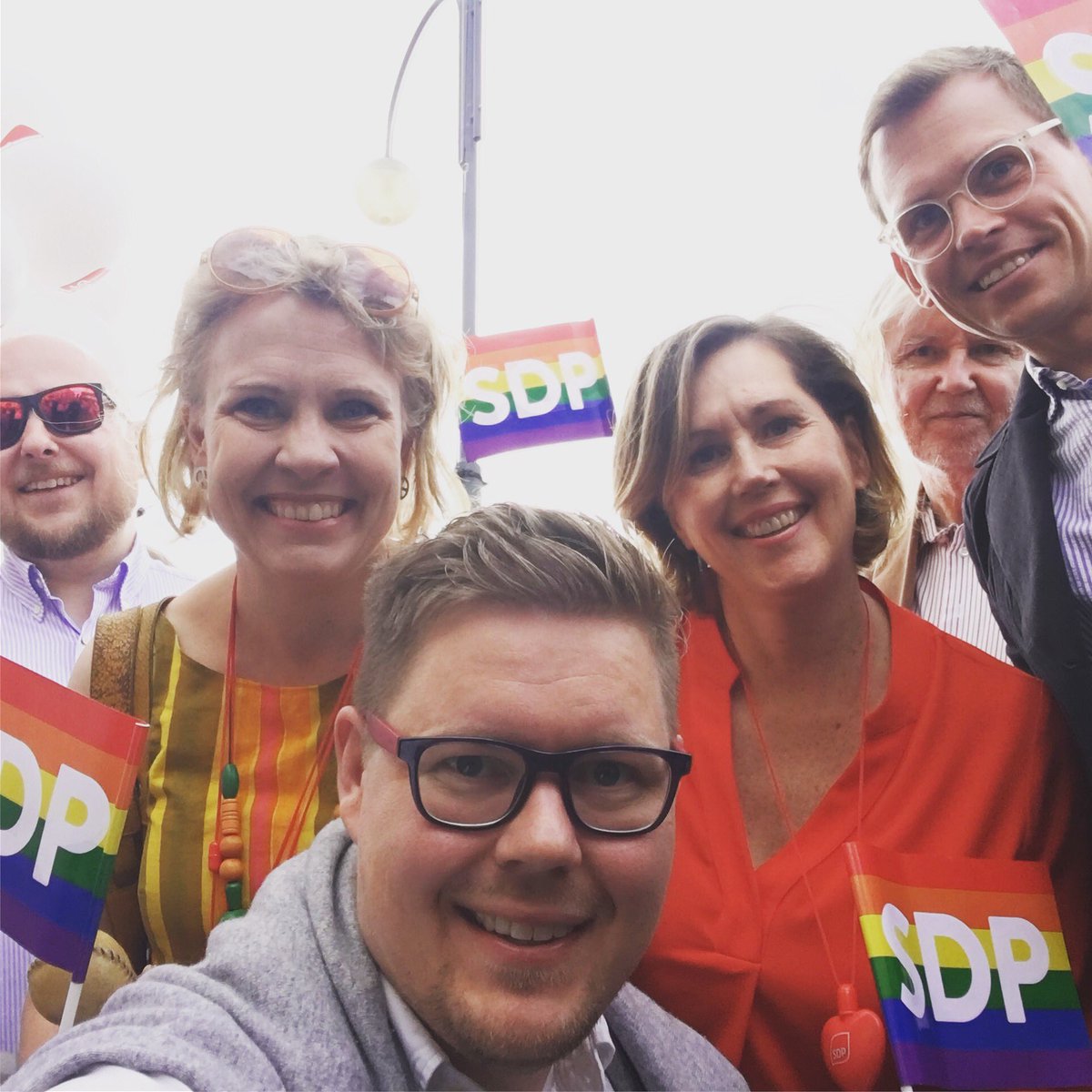 Muun muassa näiden mahtavien tyyppien kanssa marssittiin tänään yhdenvertaisuuden puolesta. #PrideHelsinki #sdp @pilvitorsti @TuulaHaatainen @JoonaRasanen @anttonrpic.twitter.com/Eht6YfrOFU