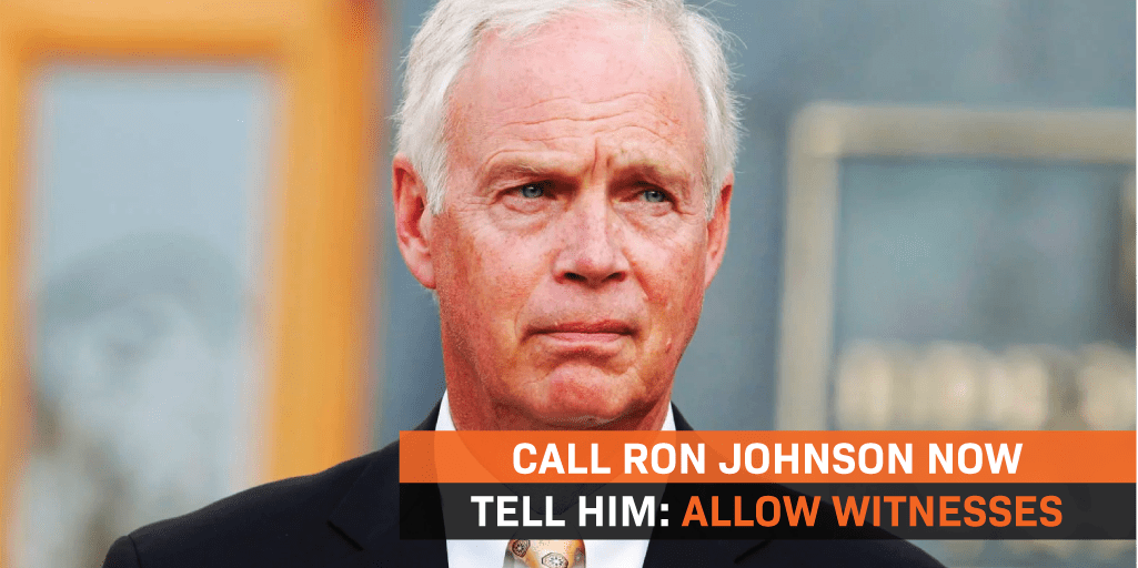 CALL NOW: Donald Trump broke the law, and Ron Johnson wants to make sure he gets away without a fair trial. WTF, Ron? Call him now and urge him to allow witnesses in the impeachment trial -- it's the right thing to do. Click here: http://wisdems.org/witnesses pic.twitter.com/2YRzTzK0wT