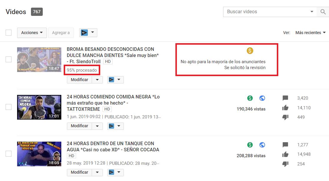 Hola @YTCreators @YouTube ¿podrían ayudarme con un problema que tengo? Hace más de 7 horas se está "Procesando" el vídeo que pensaba publicar hoy, se quedó en 95% y no pasa de ahí :( Este también fue desmonetizado y no entiendo por qué, agradecería mucho si me ayudan con esto :)pic.twitter.com/PJ6GFx14Vc