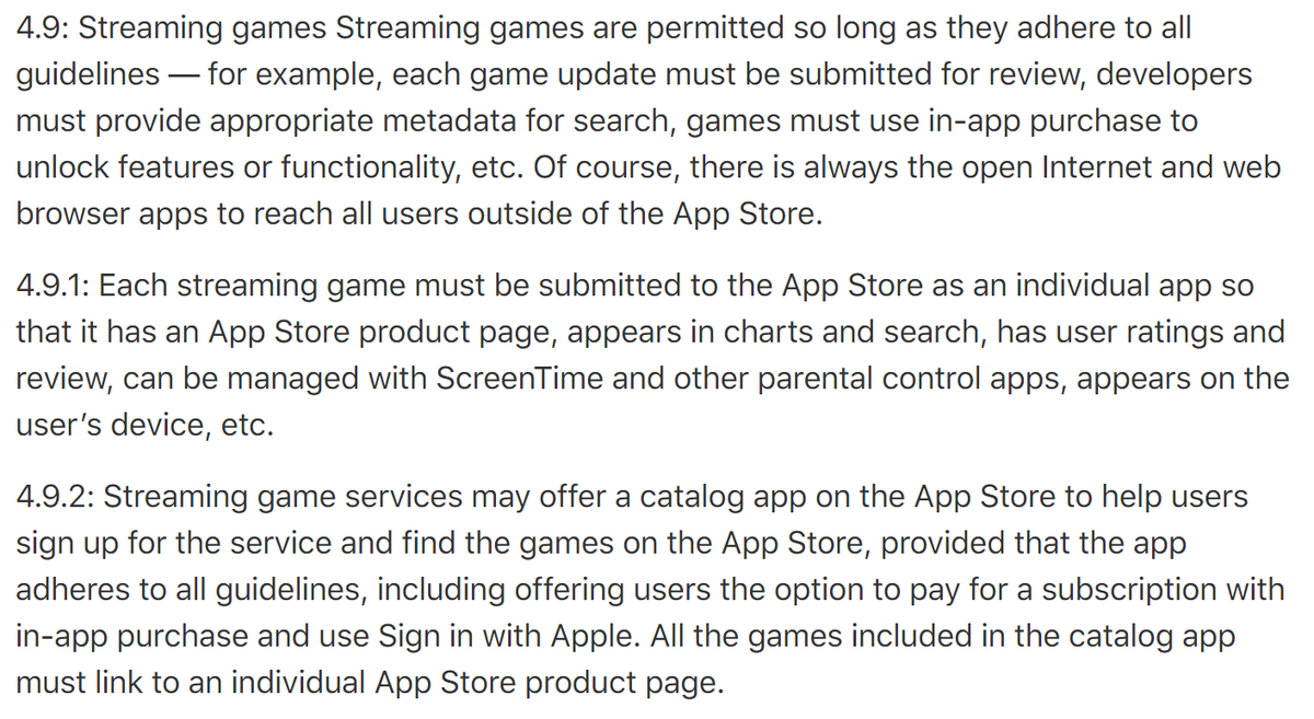 Apple has changed its App Store guidelines to somewhat permit xCloud and Stadia. There's a big catch that means games will have to be individually submitted to the App Store for review. I have asked Microsoft to comment on the changes and what they mean for xCloud on iOS pic.twitter.com/Lv26udZWRa