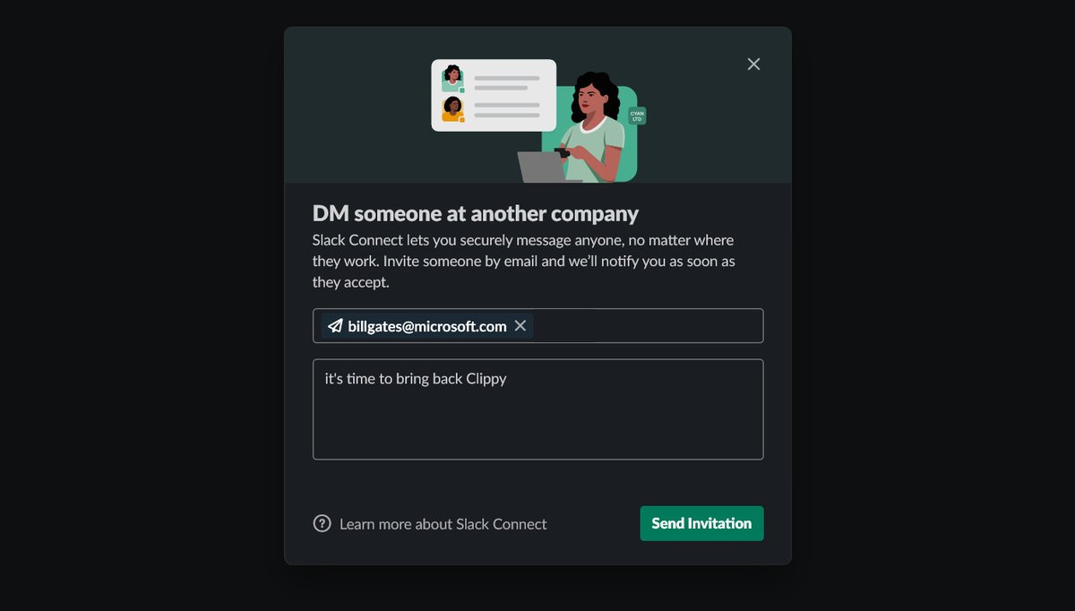 Slack now lets you DM anyone https://www.theverge.com/2021/3/24/22348126/slack-connect-direct-messaging-dm-company-feature?utm_campaign=theverge&utm_content=chorus&utm_medium=social&utm_source=twitter … pic.twitter.com/iZv5MLGwbD