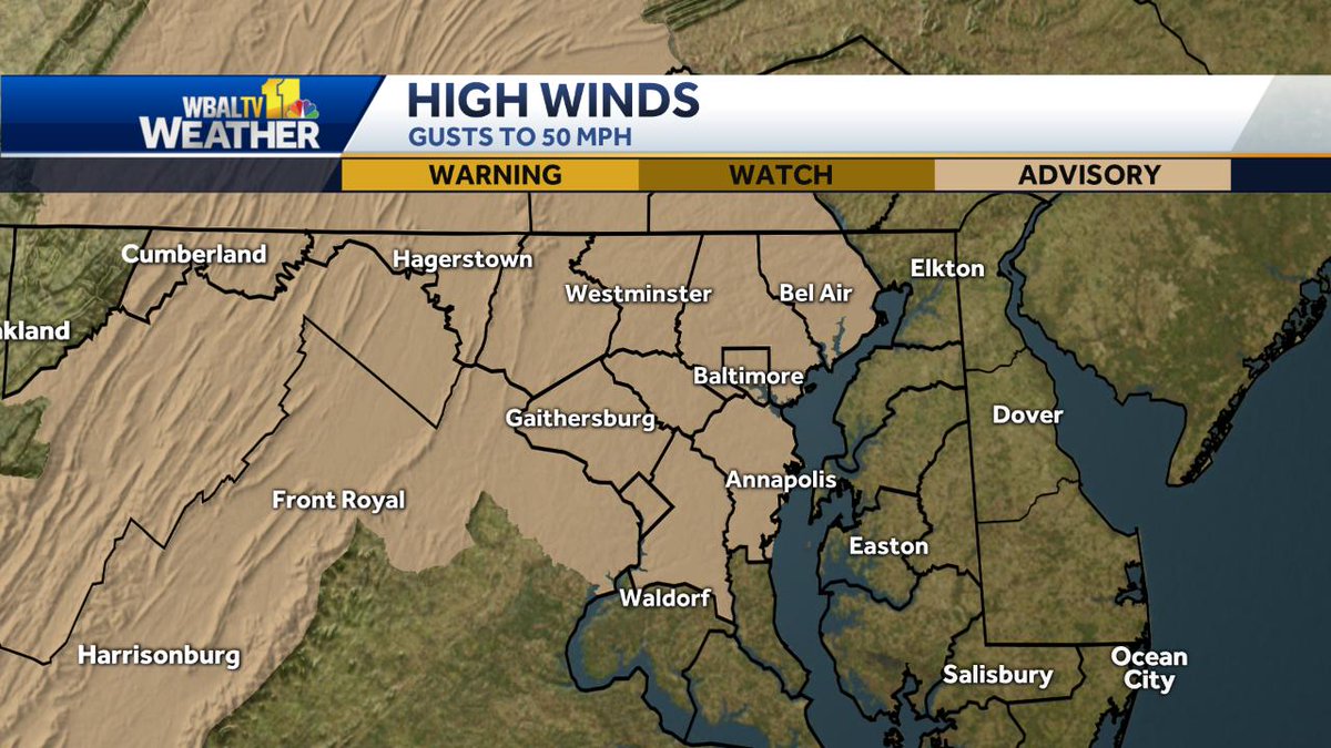 Hold on to your hats! A Wind Advisory has been issued for the Balt. metro through 3 pm. Gusts may reach 40-50 mph at times.pic.twitter.com/xzo6YoTBSs