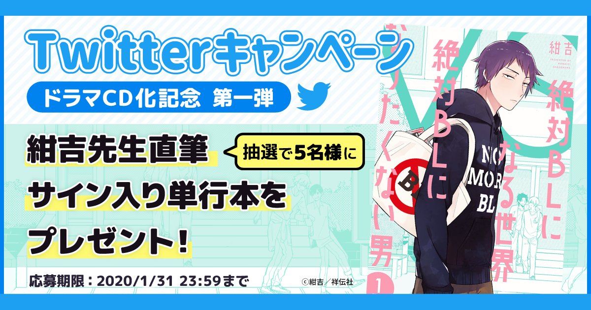 #絶対BL ×#pixivコミック Twitterキャンペーン第1弾 \ ドラマCD化を記念して、抽選で5名様に紺吉先生直筆サイン入り単行本をプレゼント