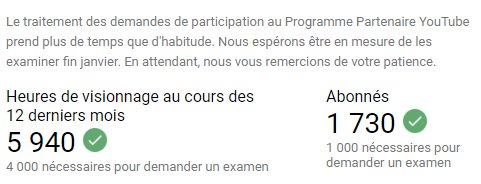 Bonjour @YTCreateurs , ça va faire un peu plus d'un mois.
