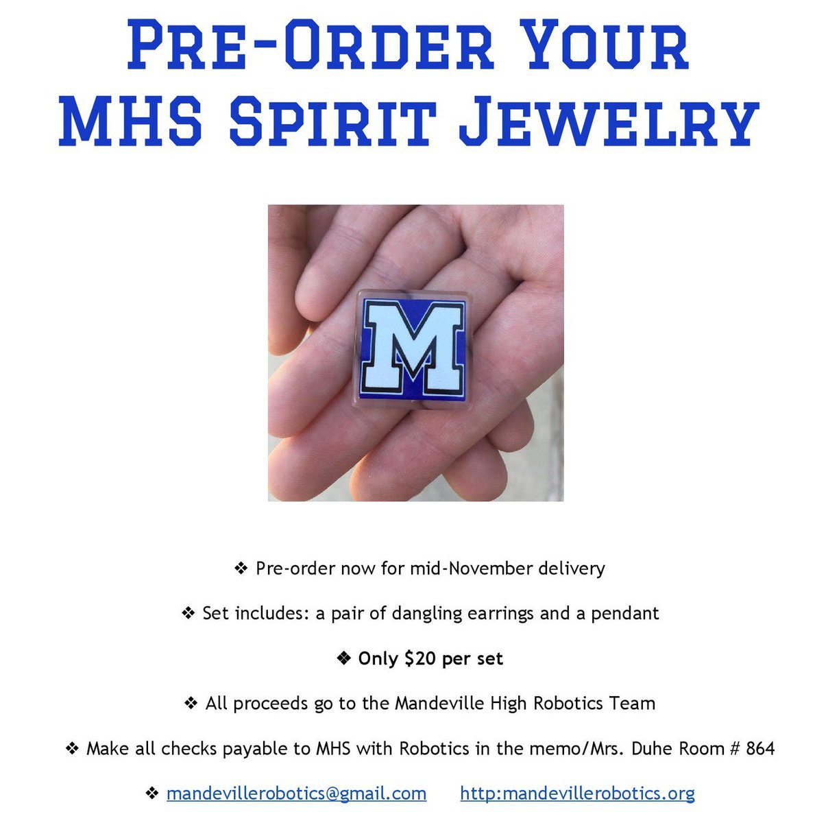 Pre-orders are now available for our MHS Spirit Jewelry. All proceeds help fund the robotics team.pic.twitter.com/UsQ2BtQl87