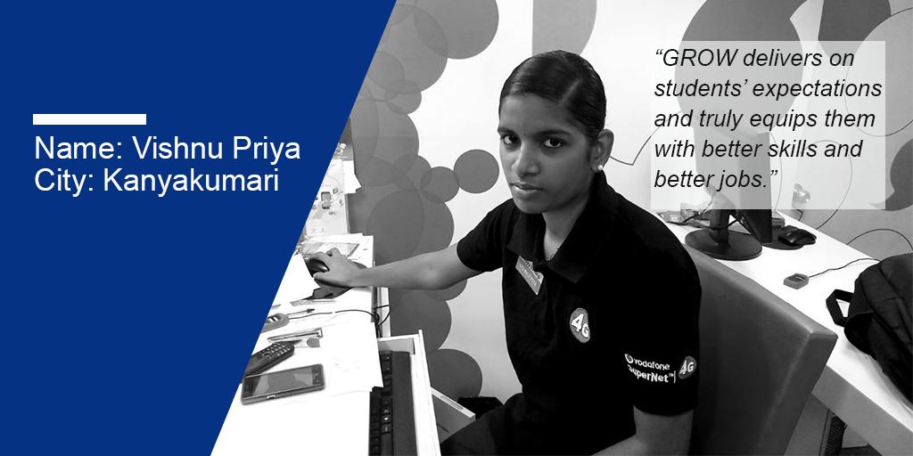 We are proud to know that our GROW aspirant Vishnu Priya has been awarded second best employee in customer relations across Kerala by her organization