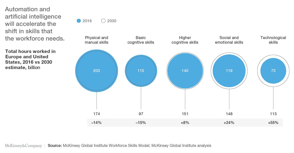 #AI, the demand for tech, social + emotional#skills will only accelerate, while the need for basic cognitive, physical + manual skills will decline. Learn more in new@McKinsey_MGI paper: https://mck.co/2IIWOrR#FutureofWorkpic.twitter.com/NbqbKgICRH