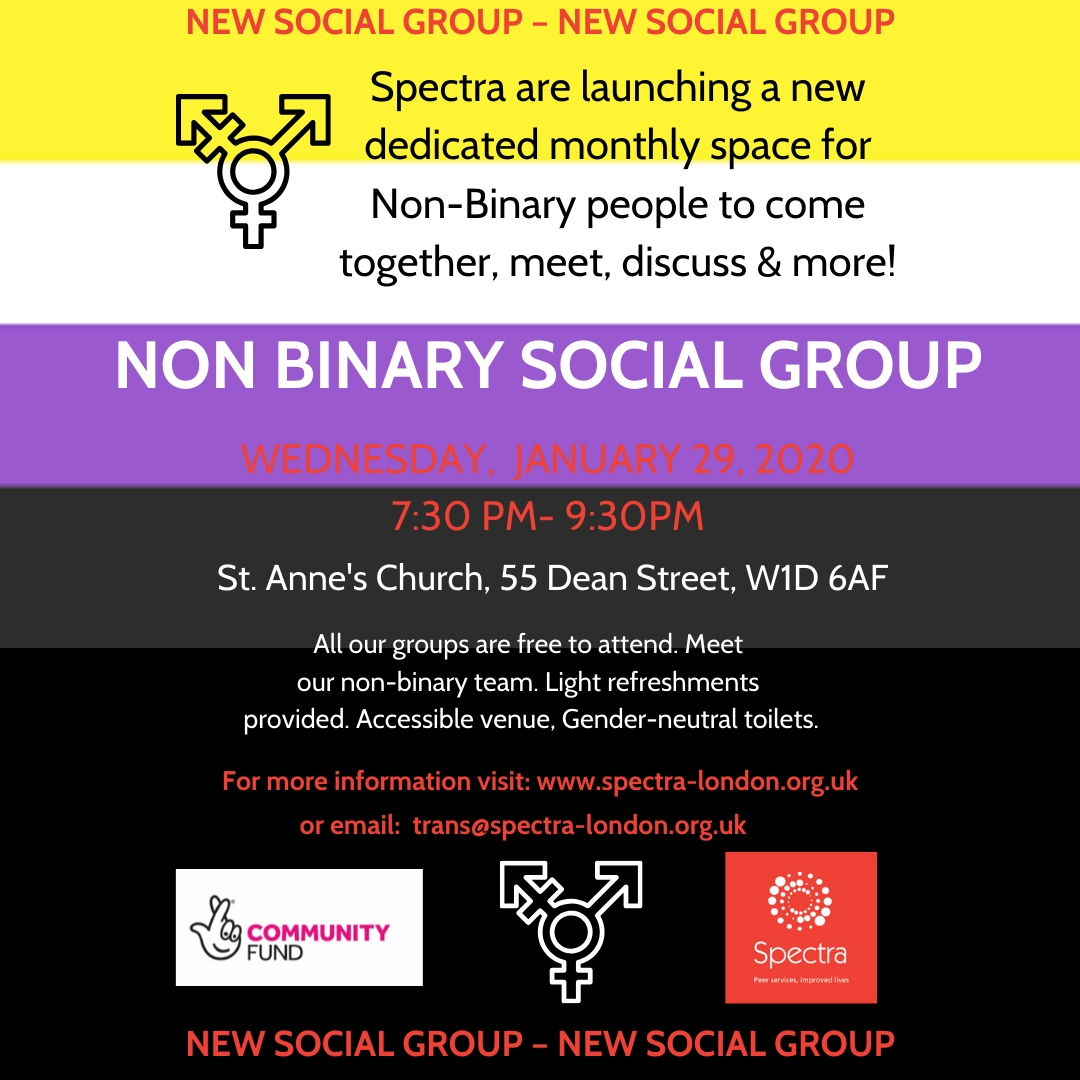 @STransservices are hosting an event to launch our new dedicated Social Group specially for individuals who identify as#nonbinary Find out more about the new upcoming Social Group! Learn how you can get involved! Meet our Non-binary team members! Find out more about Spectra too!pic.twitter.com/zeZPEex2FY