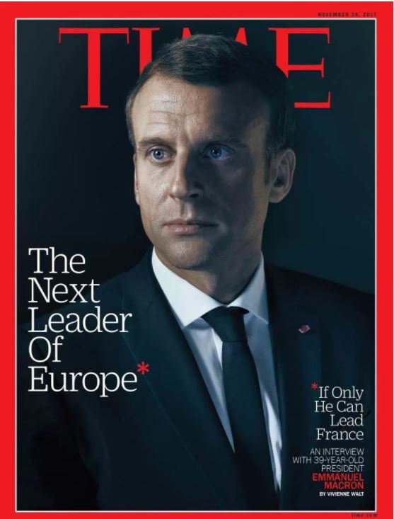 @TeamMacronPR devant une UNE d'Emmanuel Macron