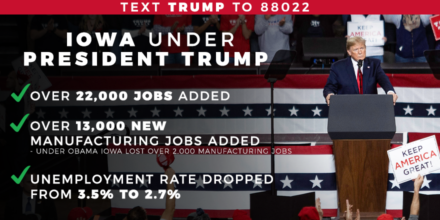 @realDonaldTrump will be taking the stage in Des Moines shortly. Here are some of the GREAT things he is doing for Iowa!#TrumpRallyDesMoinespic.twitter.com/E79DSypX2b