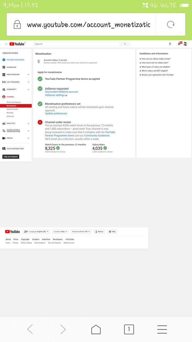 @YouTubeIndia I am completed 4k SUBSCRIBERS and 8k hours watch time but my monatization is not enable! Why??