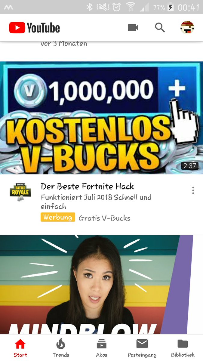Jetzt wird schon mit einem Fake-Fortnite-Channel Werbung für kostenlose vBucks gemacht. Die armen Kinder und ihr verlorenes Taschengeld. youtu . be/NIvk_zoE2-8