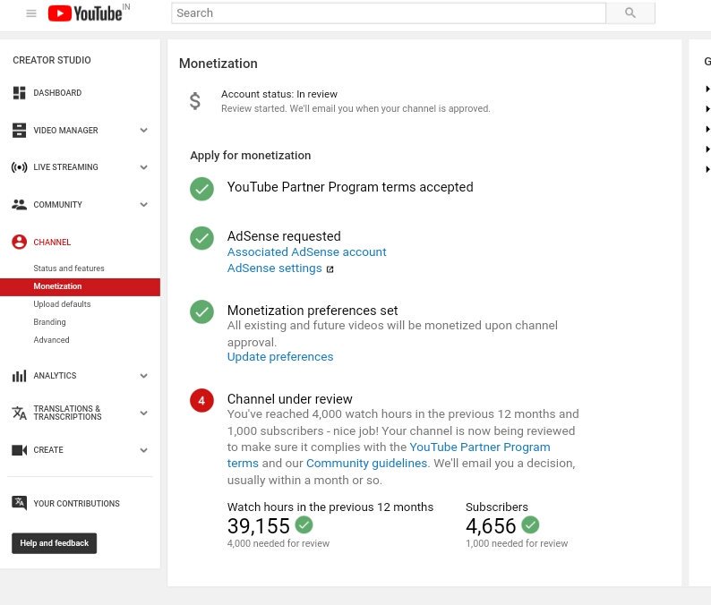 My Monetization enable time please