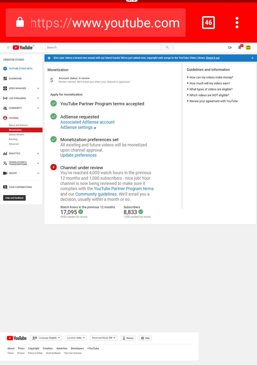@TeamYoutube please check it and Please enable my monetization.. I will so thankful to you..pic.twitter.com/mnIE0lm04G