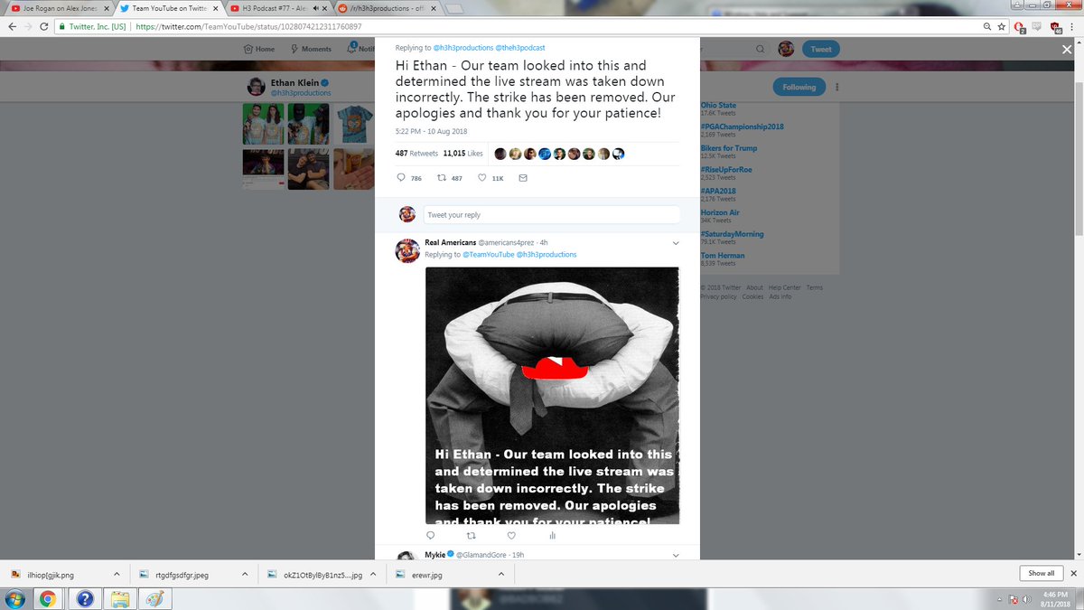 Wow @TeamYouTube just shut down our @theh3podcast live stream and gave us a strike for talking about Alex Jones??... What.