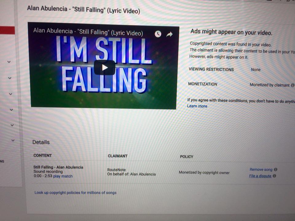 I love getting copyright strikes when using my own music. "On behalf of Alan Abulencia." You mean me? Alan Abulencia? @TeamYouTubepic.twitter.com/r7MBBcObNb