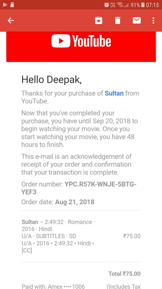 @TeamYouTube Today I have rented one movie "Sulthan" ..... But I am unable to watch it because of no video...... A blank dark screen with only audio ..... why and what is thispic.twitter.com/2ZuhIrDLef