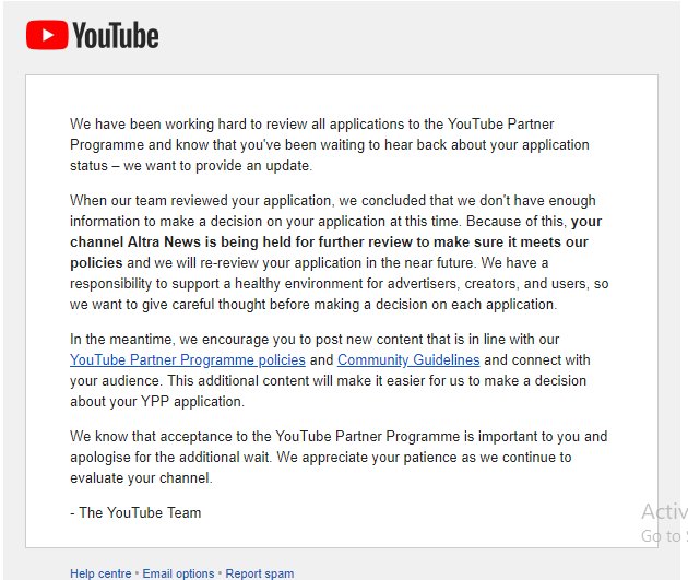 This means we'd like to look more closely at your channel before making a decision. The best thing you can do is keep uploading original content as the more info/content for us to review, the better and you should receive a second update in the near future!