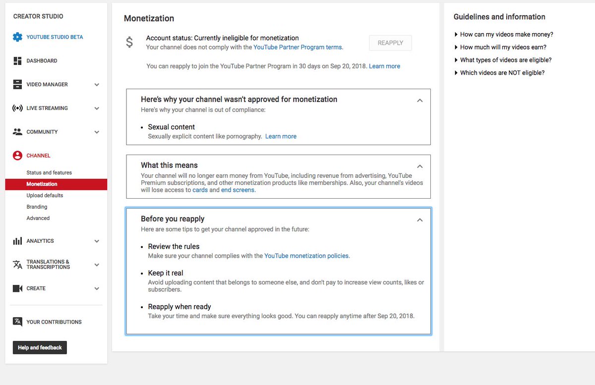 When you look my channel do you see any sexual content ? There is no any sexual content in my videos. What could be the cause of this type of flagging ?pic.twitter.com/ToNv9VNmUu