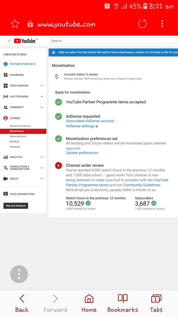 @TeamYouTube @YTCreators My channel is in under reviewed for monetization before june and i don't take any mail from youtube. So my channel is posible to enable monetization or not? If any problem in my channel then send me mail.pic.twitter.com/nVEVwSaAWT