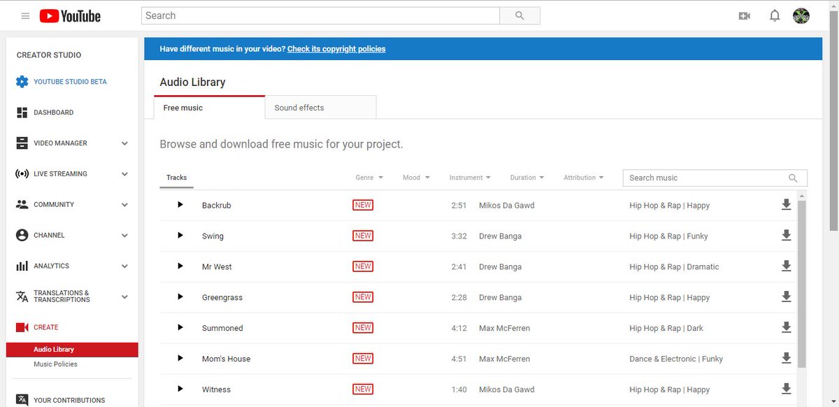 I'm on a laptop. This is what I see when I go to the Audio Library.pic.twitter.com/A18o5rlIq1