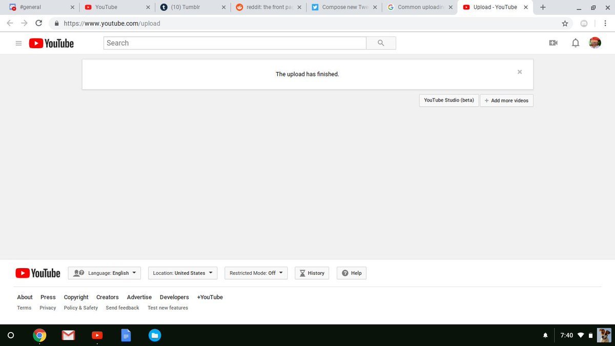-using my chromebook -cant use anything else -nothing on the guide worked when i try to upload, it does this in the middle of it. it never does this. i don't even have time to get the video fully processed before it essentially crashes.pic.twitter.com/rfsSe21cDB