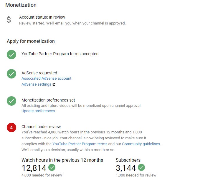 Hello @TeamYouTube My channel is completed 4k+ hour watch time and 1k+ subscribers in previous 365 days and still my channel monitization is not enabled please guide us