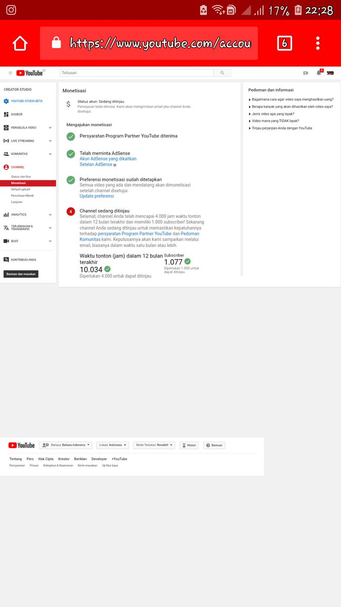 @TeamYouTube ini tampilan monetization saya di http://youtube.com/kacidastudio Tayangan lebih dari 1000 subscriber dan lebih 4000 jam tayang Kenapa masih lama peninjauanyapic.twitter.com/SO5TbXt0nN