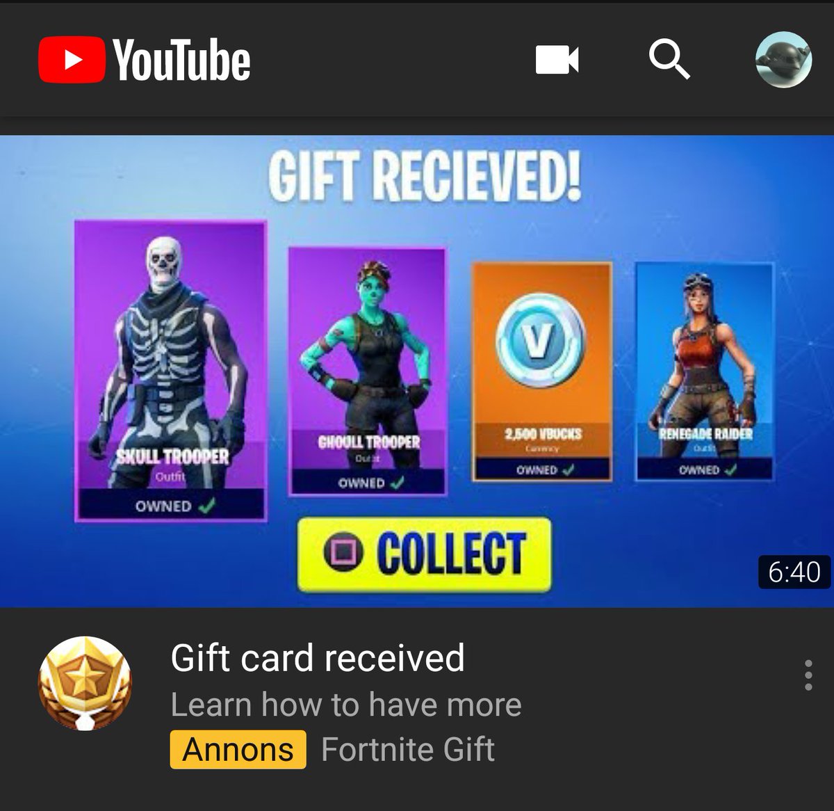 @TeamYouTube I keep getting the same 2 very obvious scam ads that im sure children will believe, these are "gta 5 mobile" and "free fortnite gift" or something like that. I have to be honest, im sure you know about this as a lot of people have complained. Time to remove them, no?pic.twitter.com/6tnafsl8mR