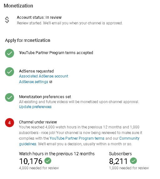 @TeamYouTube @youtube Heya YT. Our channel http://youtube.com/chadandruss is now hitting its 5th month in review for monetization. Any help would be appreciated.pic.twitter.com/uYjg3FS3VT