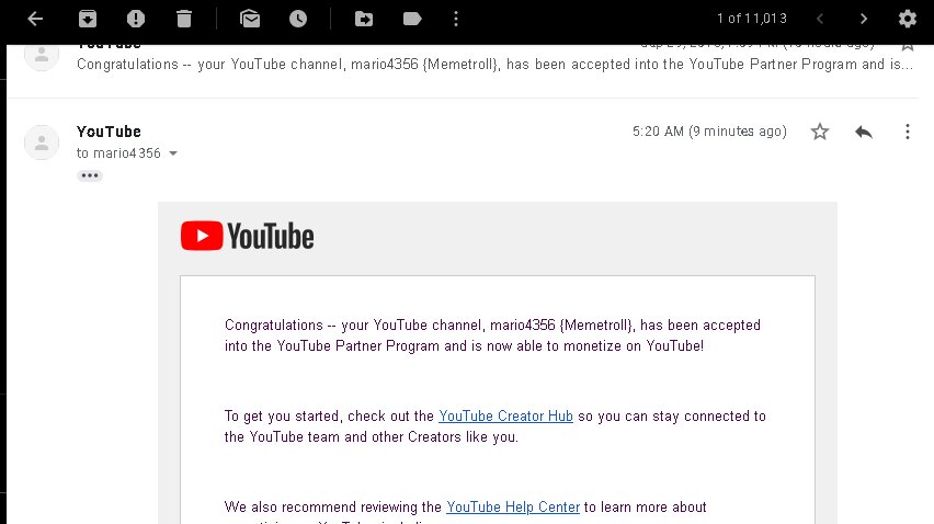 @TeamYouTube The issue with my monetization being disabled is still broken. I am still getting email spam from you guys trying to active my channels monetization. https://www.youtube.com/user/mario4356  Please check manually.pic.twitter.com/405pyuQWG1