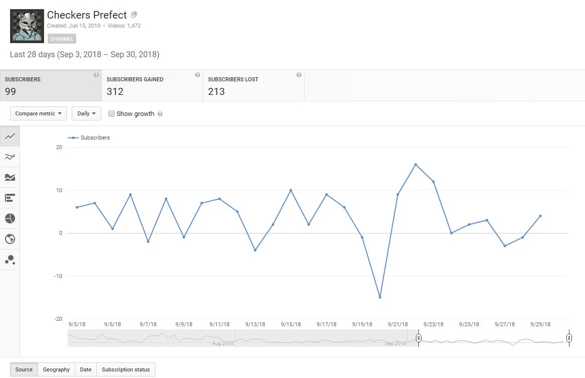 @TeamYouTube Subs seem to be a bit strange, atm, YouTube. 1. It's odd that, "organically," they'd hover at a zero-sum for more than a month - in other words, I doubt people are waiting for me to get more subs before they unsub in equal numbers so I don't feel bad.pic.twitter.com/dxtztfgkzI
