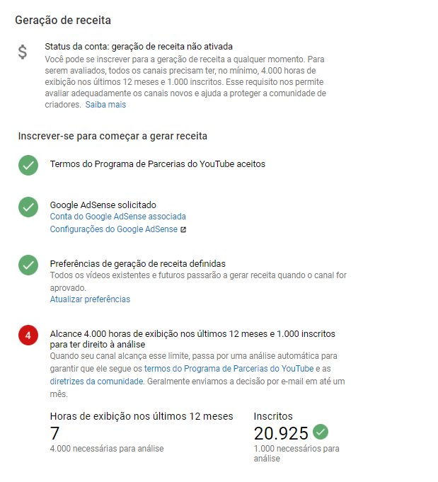 Oi, Atila. Se você se inscreveu para o Programa de parcerias depois do dia 1 de junho ou se tornou elegível apenas recentemente, seu canal será analisado em breve, pois todas as inscrições ainda são revisadas ​​manualmente e leva um pouco de tempo. Esperamos ter esclarecido.