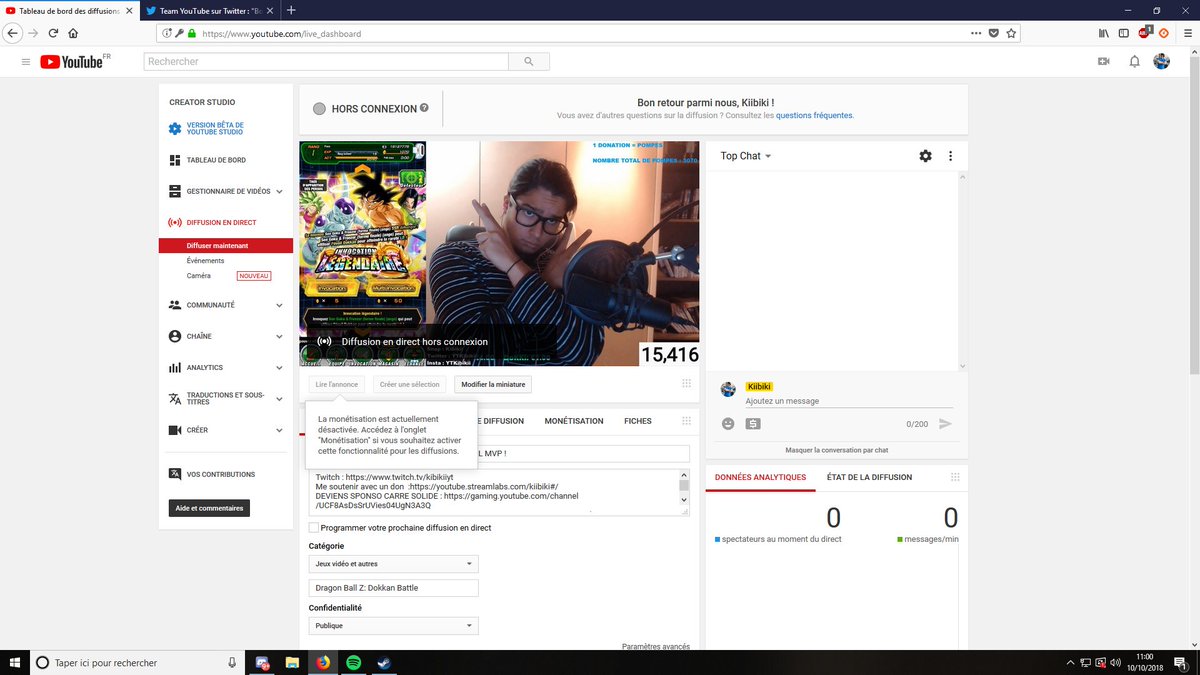 Bonjour j'aimerais comprendre pourquoi la monétisation est désactivé sur mes lives ? alors que tout est vert sur mon interfacepic.twitter.com/kPA5TP7Jfl