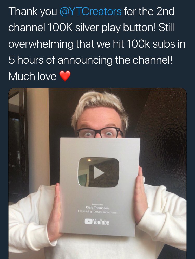 It just took 5hrs for 100k it took 2 1/2 yrs for 2k .i think this is thing you must look into.not all the old channels have very good subscribers kindly note this pointpic.twitter.com/S6tv2yz6Rc