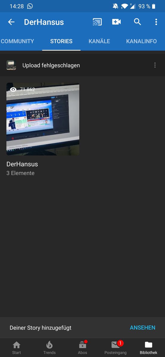 Ok. Und nur damit wir auch vom gleichen Problem reden: mit hinzufügen meinst du eine neue Story erstellen und hochladen oder bereits erstellte Stories bearbeiten?