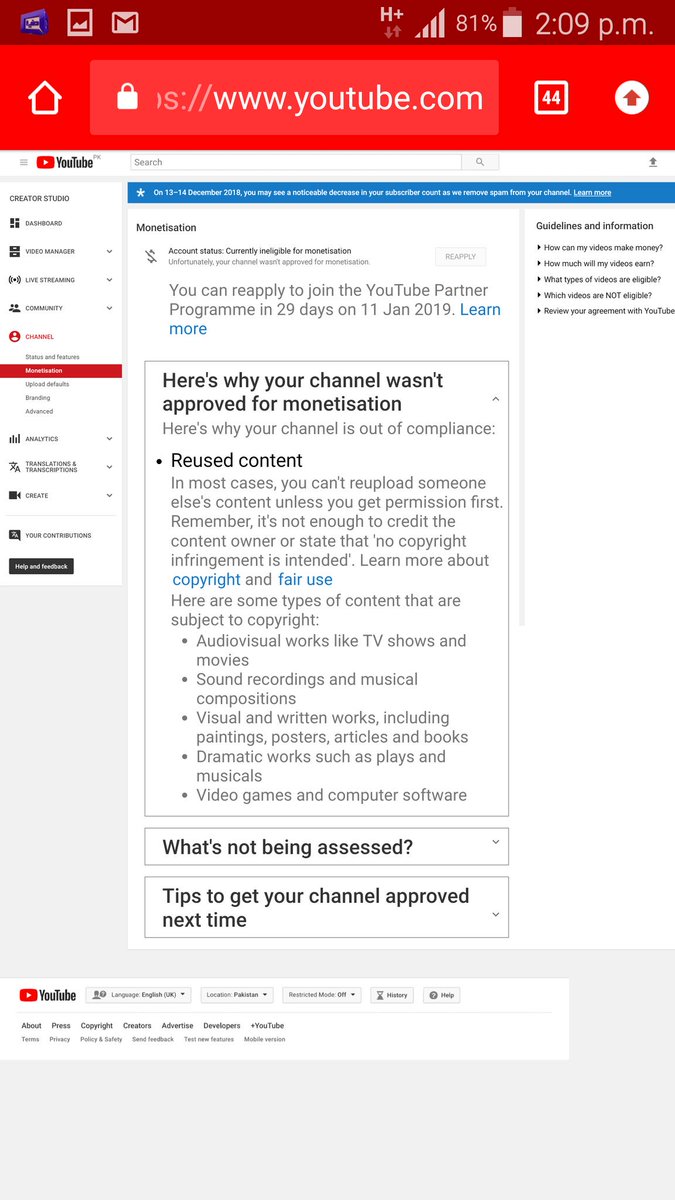 Thanks for reaching out. Just to confirm, was your channel a part of YPP previously or you applied for the program recently? Keep us posted.
